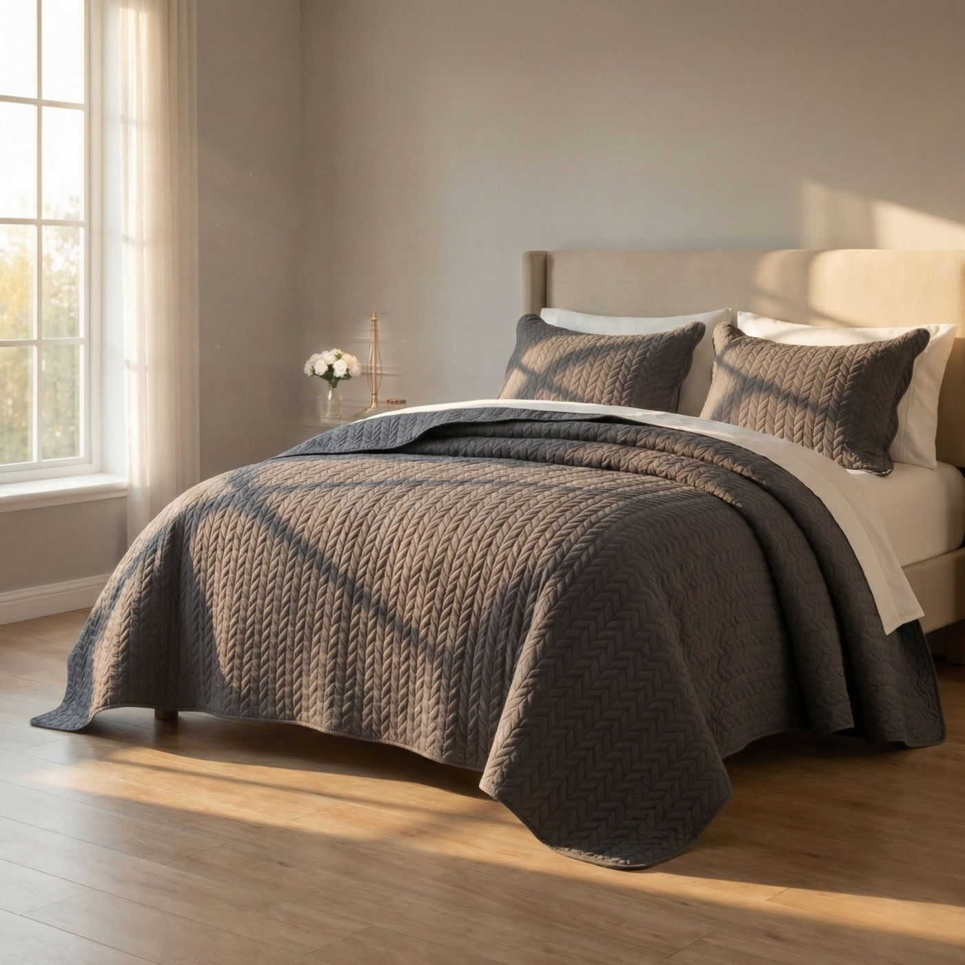 LuxeCotton bedspreads are made with refined microfiber and disciplined stitching, creating a clean look and comfortable feel that stays beautiful over time.